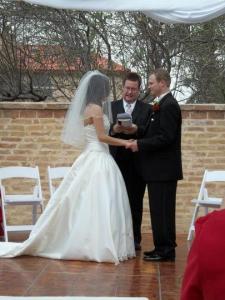 PW: “By the authority committed unto me by Jesus Christ as a minister of His Church and by the authority given to me according to the laws of the State of Texas, I now pronounce you husband and wife. ‘Whom God has therefore joined together, let not man put asunder.’”
